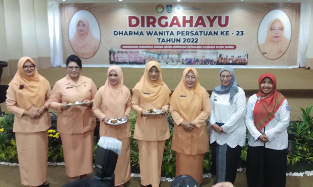 Mataram – Peringatan Hari Ulang Tahun Dharmawanita ke 23 Tahun 2022 dengan tema membangun perempuan cerdas untuk memperkuat ketahanan keluarga di era digital dilaksanakan di Gedung Graha Bhakti Praja, Kantor Gubernur NTB, Rabu (14/12/2022).